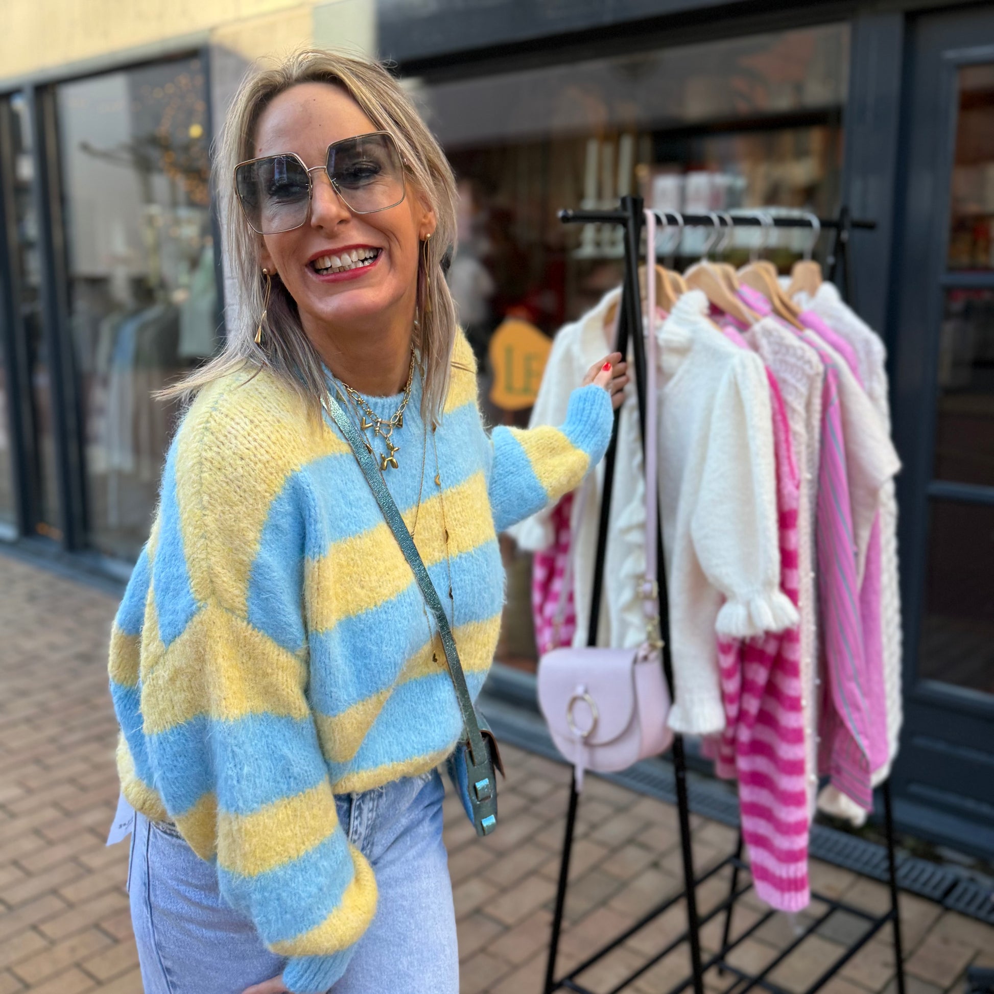 Gebreide Streep Trui - Blauw/Geel