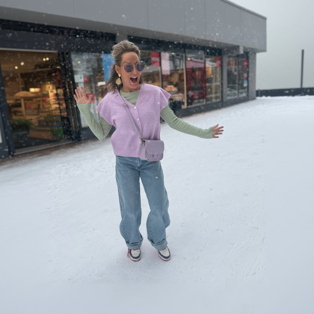 Met dit zachte gilet maak je elke outfit leuker én warmer ;-) Deze heeft een v-hals, knoopsluiting met parelmoer kleurige knoopjes en uitlopende korte mouwen.