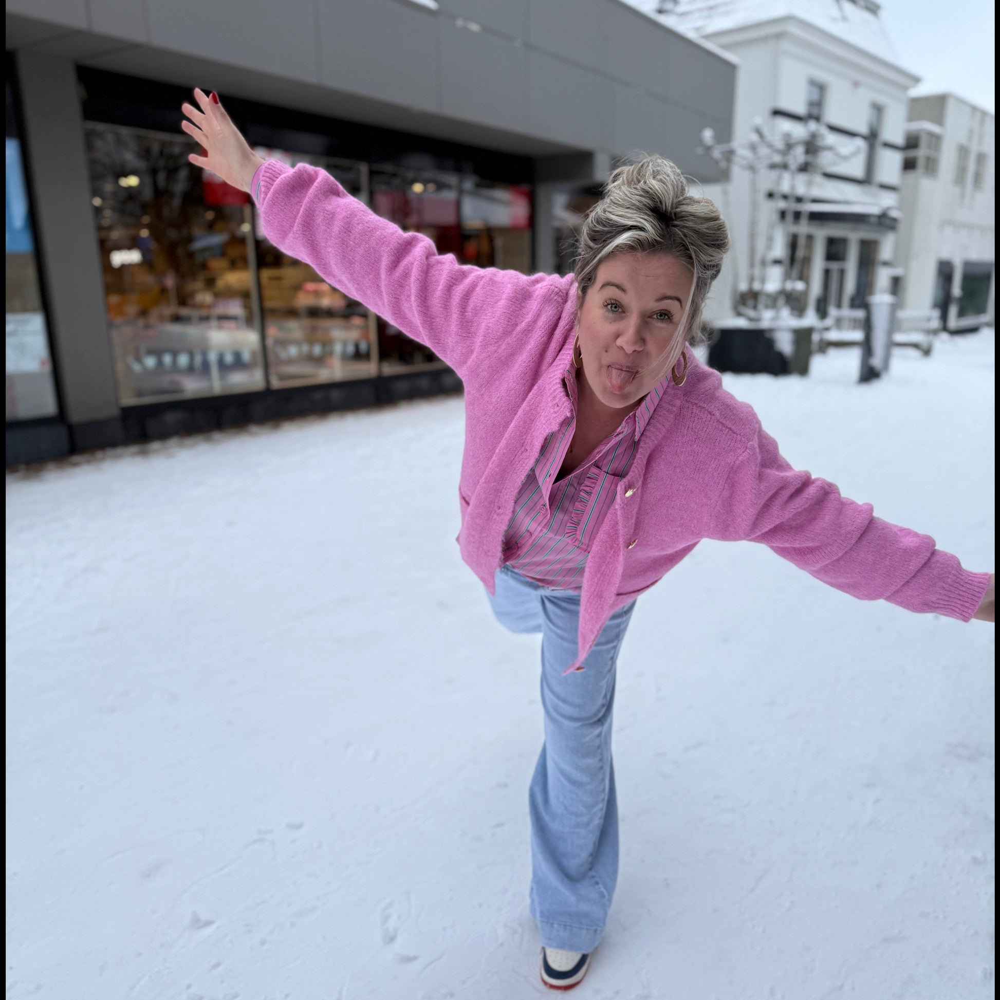 Pasvorm: Valt op maat. Maartje is 1.67 cm en draagt hier maat S\M // Mirjam is 1.70 cm en draagt hier maat l/xl.